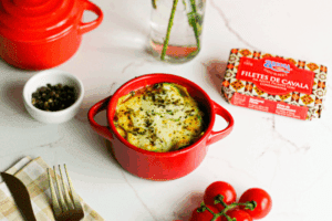 A cavala picante da Briosa já vem bem temperada, com um apimentado equilibrado que facilita tudo: você monta rápido, assa em poucos minutos e o resultado fica ótimo sem esforço. Fizemos aqui em porções individuais mas se você preferir, pode montar em um refratário único.Ingredientes: